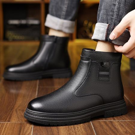 Winter Men's Cotton Shoes Casual Leather Shoes Velvet Warm Business Leather Boots